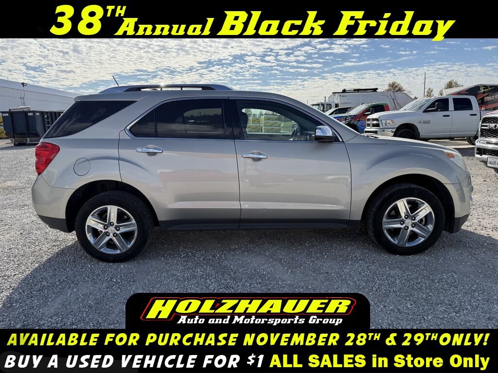 This Vehicle is part of our 38th Annual Black Friday Sales Event!!!!! Vehicles are on a 1st Come 1st Served Basis. Vehicles priced at $5,000.00 or Lower are not available for purchase until Friday, November 28th at 8:00 a.m. Retail customers only no wholesalers and 1 vehicle per person. All Prices are plus Tax Title License and Documentary Fees. Please see Dealer for Details. All Sales are Final. Prices only good Nov 28th and Nov 29th 20252014 Chevrolet Equinox LTZ 2.4L 4-Cylinder SIDI DOHC FWD Champagne Silver MetallicONE OWNER!!, NEWER TIRES!!, 18 Chrome-Clad Aluminum Wheels, 8-Way Power Driver Seat Adjuster, Automatic Climate Control, Emergency communication system: OnStar Directions & Connections, Equipment Group LTZ, Exterior Parking Camera Rear, Forward Collision Alert & Lane Departure Warning, Front Halogen Fog Lamps, Garage door transmitter, Heated Driver & Front Passenger Seats, Inside Self-Dimming Rear-View Mirror, Memory seat, Perforated Leather-Appointed Seat Trim, Pioneer Premium 8-Speaker System, Power Liftgate, Power passenger seat, Radio: Chevrolet MyLink Audio System, Rear Park Assist, Rear Parking Sensors, Remote Vehicle Starter System, Roof rack: rails only, Safety Package, SiriusXM Satellite Radio.CARFAX One-Owner.Our incredible selection, our low overhead and low prices simply cannot be matched. Teamed with our friendly small town service you'll see why Holzhauer Auto Group is one of the Midwest's largest and fastest growing dealerships. We dont just compete. We blow the competition away with selection, service and price. Before you buy a car, truck, van or SUV from anywhere else you owe it to yourself to visit Holzhauer Auto Group.22/32 City/Highway MPGAwards:* 2014 IIHS Top Safety Pick+ with optional front crash prevention * 2014 IIHS Top Safety Pick+ * 2014 KBB.com Brand Image Awards