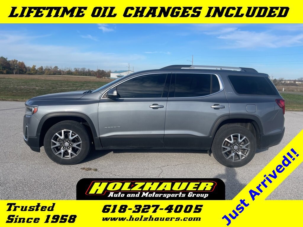 2021 GMC Acadia SLE 2.5L 4-Cylinder DGI DOHC VVT FWD Satin Steel MetallicLOCAL TRADE-IN!!, PURCHASED HERE & SERVICED HERE!!, Tinted Windows, Smart-Liner Floor Liners, 120-Volt Power Outlet, 4-Way Manual Driver Seat Adjuster, 4-Way Manual Passenger Seat Adjuster, 6-Passenger (2-2-2 Seating Configuration), 8-Way Power Driver Seat Adjuster, Apple CarPlay/Android Auto, Automatic temperature control, Brushed Aluminum Roof Rails, Driver Convenience Package, Emergency communication system: OnStar and GMC connected services capable, Hands Free Power Programmable Liftgate, Heated Driver & Front Passenger Seats, Power Driver Lumbar Control Seat Adjuster, Preferred Equipment Group 3SA, Radio: AM/FM w/8 Diagonal Multi-Touch Display, Rear air conditioning, Remote Start, SiriusXM Radio, Wheels: 18 Machined Aluminum w/Dark Accents, Wireless Apple CarPlay/Wireless Android Auto.Our incredible selection, our low overhead and low prices simply cannot be matched. Teamed with our friendly small town service you'll see why Holzhauer Auto Group is one of the Midwest's largest and fastest growing dealerships. We dont just compete. We blow the competition away with selection, service and price. Before you buy a car, truck, van or SUV from anywhere else you owe it to yourself to visit Holzhauer Auto Group.Odometer is 13182 miles below market average! 21/27 City/Highway MPG
