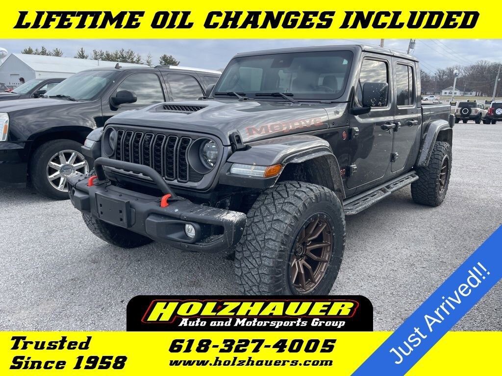 2024 Jeep Gladiator Mojave 3.6L V6 24V VVT 4WD Granite Crystal Metallic ClearcoatONE OWNER PURCHASED HERE & SERVICED HERE!!, LOCAL TRADE-IN!!, NEW TIRES!!, 20 Fuel Wheels, 35 Nitto Ridge Grappler A/T Tires, Brush Guard, Trailer Hitch, Front/Rear Splash Guards, Weather Tech Floor Liners, Tinted Windows, 12.3 Touchscreen Display, 4.10 Rear Axle Ratio, 4G LTE Wi-Fi Hot Spot, Alexa Built-In, Alpine Premium Audio System, Apple CarPlay/Android Auto, Auto High Beam Headlamp Control, Auto-Dimming Rear-View Mirror, Automatic temperature control, Blind Spot & Cross Path Detection, Body Color 3-Piece Hard Top, Body Color Rubicon Highline Flare, Connected Travel & Traffic Services, Emergency/Assistance Call, Freedom Panel Storage Bag, Front fog lights, Full Length Floor Console Premium Armrest, GPS Navigation, HD Radio, Heated Front Seats, Heated Steering Wheel, Integrated Center Stack Radio, Integrated Off-Road Camera, Leather Trimmed Bucket Seats, Mojave X Package, MOPAR Hardtop Headliner, MOPAR Spray In Bedliner, ParkSense Rear Park Assist System, Power Adjust 8-Way Driver Seat, Power Adjust 8-Way Front Passenger Seat, Premium Door Trim Panel, Quick Order Package 24A Mojave X, Radio: Uconnect 5 Nav w/12.3 Display, Rear Sliding Window, Rear Window Defroster, Rock Protection Sill Rails, SiriusXM w/360L, Steel Front Bumper, Steel Rear Bumper.CARFAX One-Owner.Our incredible selection, our low overhead and low prices simply cannot be matched. Teamed with our friendly small town service you'll see why Holzhauer Auto Group is one of the Midwest's largest and fastest growing dealerships. We dont just compete. We blow the competition away with selection, service and price. Before you buy a car, truck, van or SUV from anywhere else you owe it to yourself to visit Holzhauer Auto Group.
